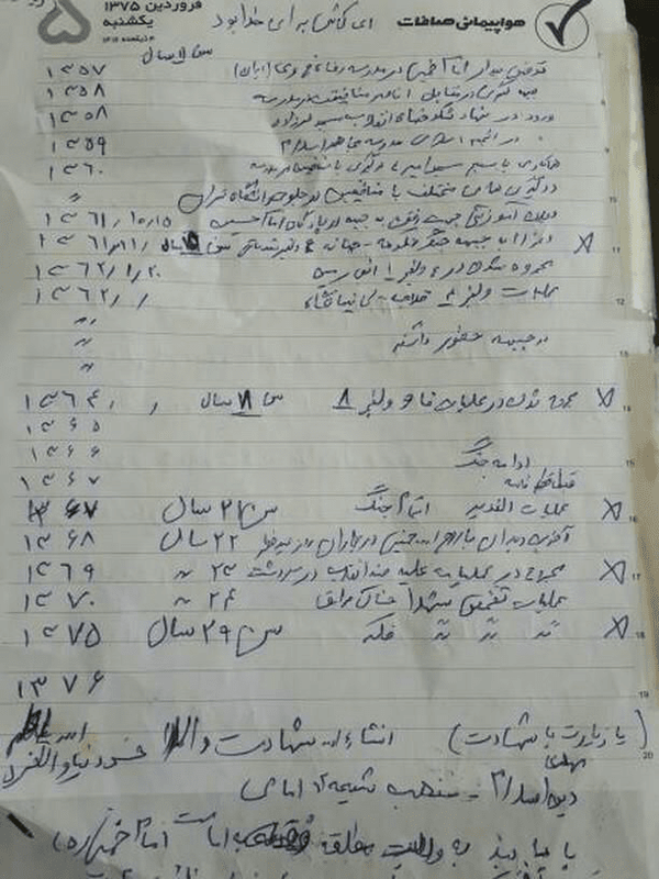 شهید «مجید پازوکی» فرمانده تفحص شهدای لشکر ۲۷ دستنوشتهای دارد که در آن به کارهای مهم خود از ۱۱ تا ۲۹ سالگیاش اشاره کرده و در ابتدای آن جمله «ای کاش برای خدا بود» را نوشته بود.